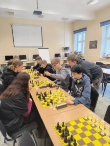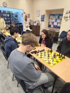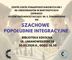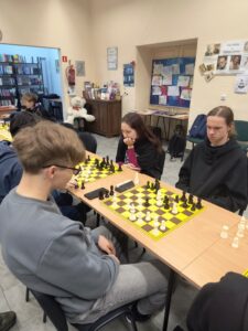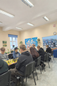 W szkolnej bibliotece Zespół Szkół Ponadpodstawowych nr 1 im. Kresowiaków w Bartoszycach odbyło się pierwsze Szachowe Popołudnie Integracyjne, które zainaugurowało cykl comiesięcznych spotkań miłośnikw królewskiej gry. Wydarzenie zgromadziło uczniów naszej szkoły oraz LO im. Stefana Żeromskiego w Bartoszycach. Spotkanie przebiegło w serdecznej i sprzyjającej integracji atmosferze. Uczestnicy mieli okazję rozegrać partie towarzyskie, wymienić się doświadczeniami oraz doskonalić swoje umiejętności strategiczne. Inicjatywę podjęliśmy we współpracy z panią Anną Drozd z Żeroma, podczas zawodów wojewódzkich, w których uczestniczyli uczniowie naszych szkół. Szachowe Popołudnia Integracyjne będą odbywały się w miarę możliwości regularnie – raz w miesiącu – tworząc przestrzeń do rozwijania pasji, budowania relacji oraz promowania kultury logicznego myślenia wśród młodzieży. Już dziś zapraszamy na kolejne spotkanie, które zaplanowaliśmy na 30 marca!!! Zapraszamy.