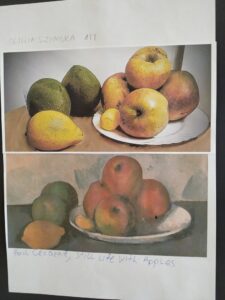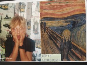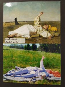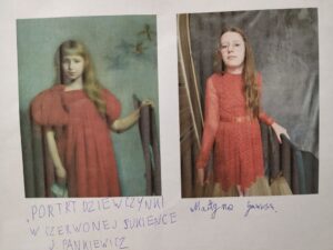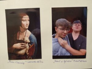 Uczniowie klas pierwszych technikum otrzymali na lekcji plastyki praktyczne zadanie. Polegało ono na wykonaniu zdjęcia zainspirowanego dziełem sztuki. Zadziałało to na zasadzie modnych teraz wyzwań, ale warto nawet dla samego siebie zrobić taki cykl zdjęć. Korzyści są rozliczne. Po pierwsze, uruchamiamy kreatywność i pomysłowość, bo trzeba znaleźć własną drogę do interpretacji obrazu, dobrać rekwizyty, stroje, tło itd. Po drugie, dokształcamy się z historii sztuki. Po trzecie, uczymy się kompozycji i oświetlenia z najlepszych wzorców. Po czwarte, podtrzymujemy a nawet rozwijamy swoje umiejętności korzystania ze sprzętu fotograficznego i oświetlenia. Po piąte, możemy zaangażować wszystkich domowników i zrobić z tego wspólną zabawę. Po szóste, możemy się pochwalić rezultatem naszych starań, porównać go z tym jak inni podeszli do tematu.