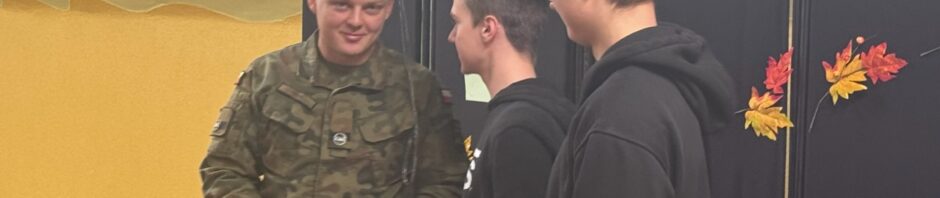 Łukasz Tytoń absolwent Technikum Mechatronicznego przyjechał z wizytą do swojej byłej szkoły 6 grudnia 2024. Zaprezentował istotę konstrukcji Akademii Wojsk Lądowych we Wrocławiu – jest to jedna z pięciu uczelni wojskowych w Polsce. Bardzo prężnie działająca, nieustannie się rozwijająca, doskonale wyposażona, osiągająca wysokie średnie ocen studentów, dające szerokie możliwości zatrudnienia, zarówno w służbach mundurowych, jak i w służbie cywilnej. Uczelnia gwarantuje wysoką jakość kształcenia, seminaria, rozwijające zajęcia z najlepszymi wykładowcami w kraju, wyjazdy, praktyki, koła zainteresowań. O wszystkich tych aspektach mówił Łukasz, który spędził w murach Mechaniaka 4 lata. Dał się poznać jako uczeń dobry, rzetelny, uczciwy, z wysoką kulturą osobistą, zawsze uśmiechnięty. Do tej pory często jest wspominany przez wychowawczynię panią Danutę Maroską i nie tylko.