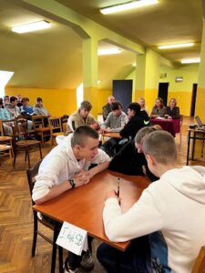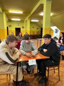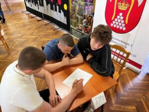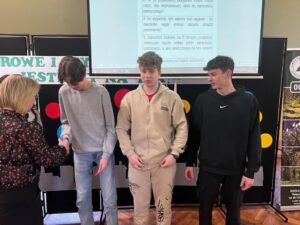 W części drużynowej 3-osobowe reprezentacje klas pierwszych rozwiązywały różnorodne zadania dotyczące tematu. Uczniowie musieli wykazać się nie tylko konkretną wiedzą, ale także kreatywnością i szybkim, logicznym myśleniem, bowiem wszystkie konkurencje odbywały się na czas. Po podsumowaniu punktacji zwycięzcami okazała się drużyna z klasy I Technikum Informatycznego w składzie Piotr Zaczyk, Oliwier Zakrzewski, Radosław Fiedorowicz, II miejsce zajął zespół z klasy I Technikum Mechatronicznego – Jakub Habiński, Kacper Gowkielewicz, Patryk Zaburko, natomiast miejsce III przypadło drużynie z klasy I Technikum Pojazdów Samochodowych w składzie Adrian Błażewicz, Jakub Mucha, Igor Mazurek.
